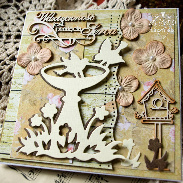 I cut Bird Bath twice from different papers colours and used all elements which I cut.